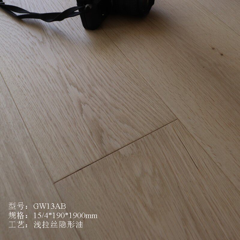 Export 15 4mm oak invisible oil three-layer solid wood composite floor light luxury cream wind environmental protection geothermal lock