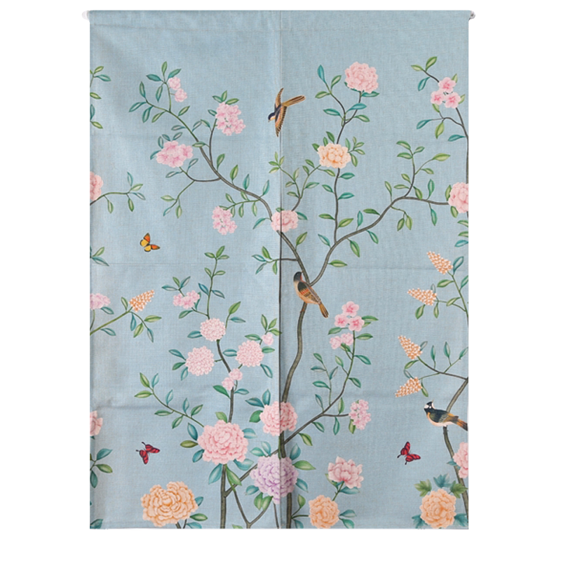 Bookable Chinese Flower Bird Landscape door curtain Living room Xuanguan curtain Feng Shui Curtain Subpartition Window Cotton Linen Decorative curtain
