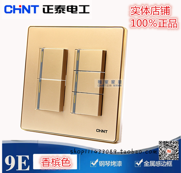 CHINT 120 type 9E wall switch socket champagne gold 5 open five open double cut switch panel gold 120*120