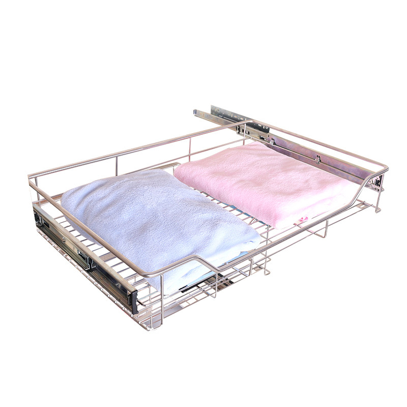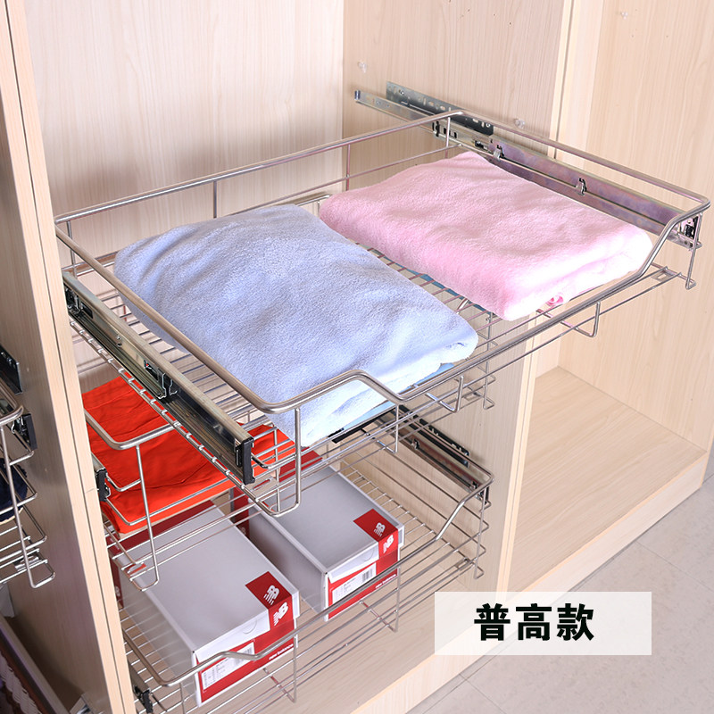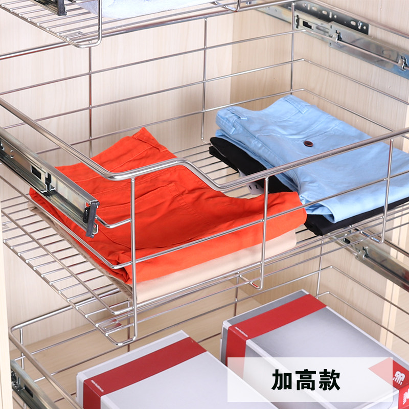 Stainless Steel Wardrobe Pull Basket Cloakroom Hardware Telescopic Pants Frame Pull Basket closet Push-and-pull Containing Storage Basket