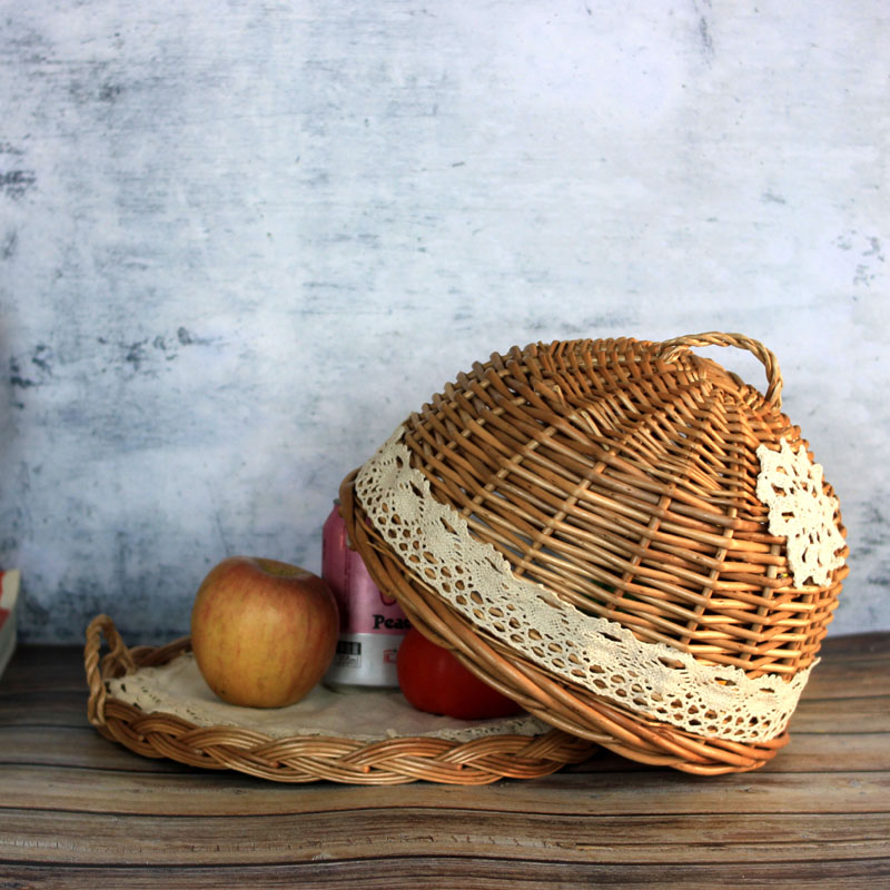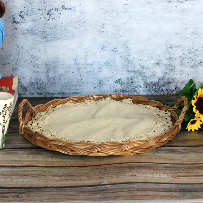 Annual ring wicker rattan hand-woven log color zakka round food bread cover refreshment pizza tray