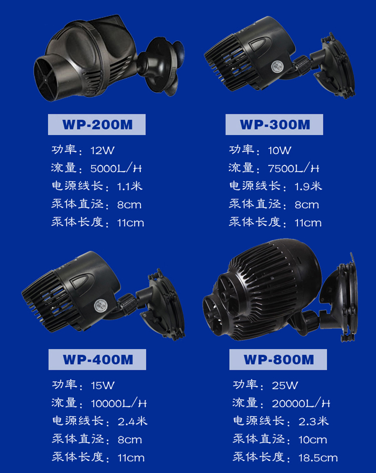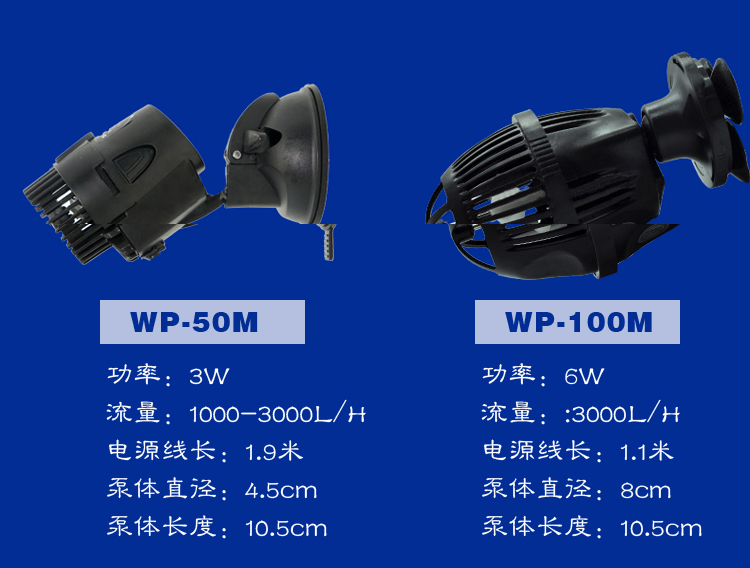 WP-50M (3W) suitable for 50cm of cylinders WP-100M (6W) suitable for 50-80cm cylinders WP-200M (12W) suitable for 80-100