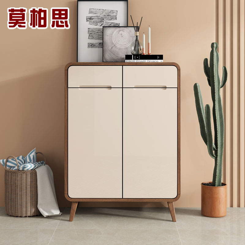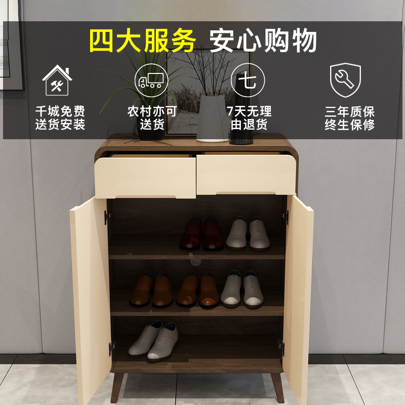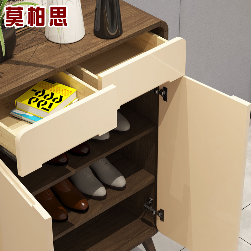 Light luxury solid wood shoe cabinet Household door breathable large capacity entrance cabinet Storage cabinet Into the door one-piece wall small apartment type