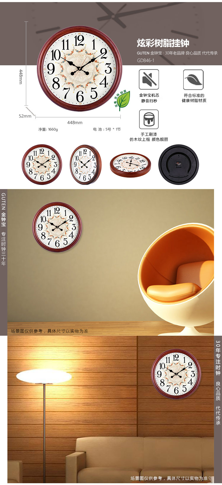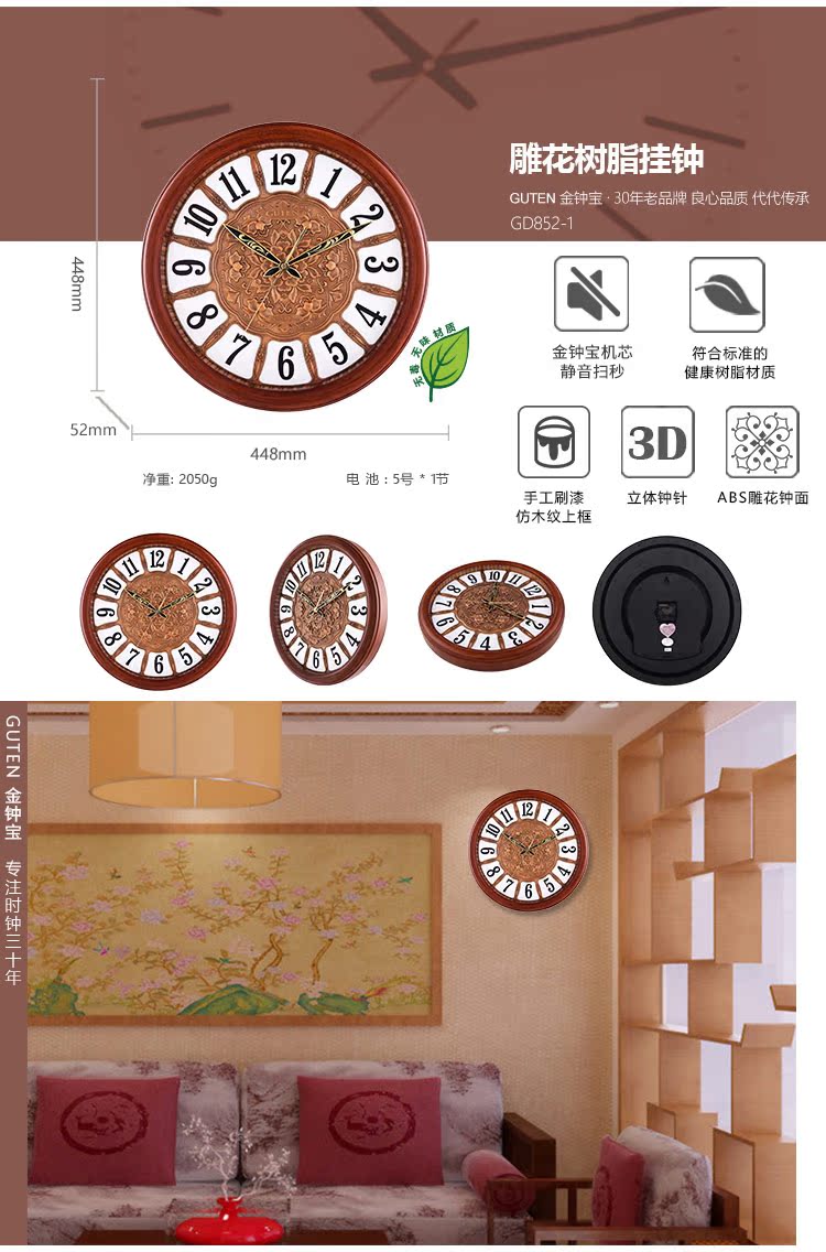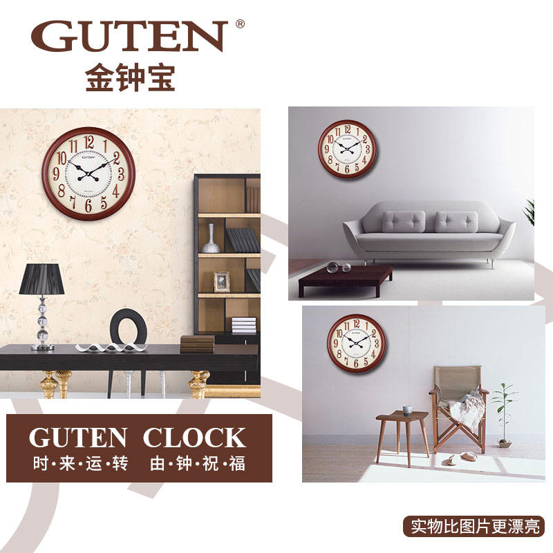 Golden Treasure GUTEN wall clock living room European pastoral retro creative decoration silent quartz hanging watch GD847