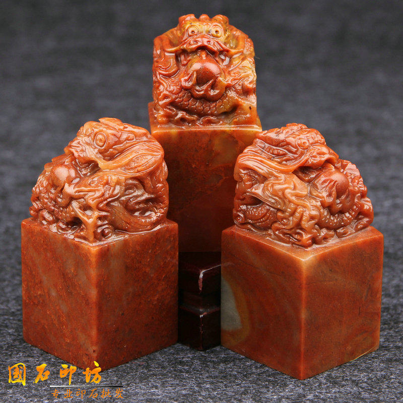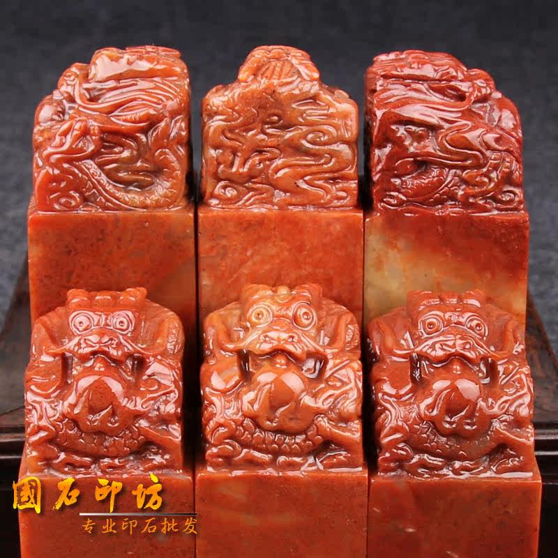 Shoushan Stone Fine Carving Zhenglong Seal Natural Red Stone Seal Name and calligraphy and painting practice Chapter material gold stone seal engraving and sending gift