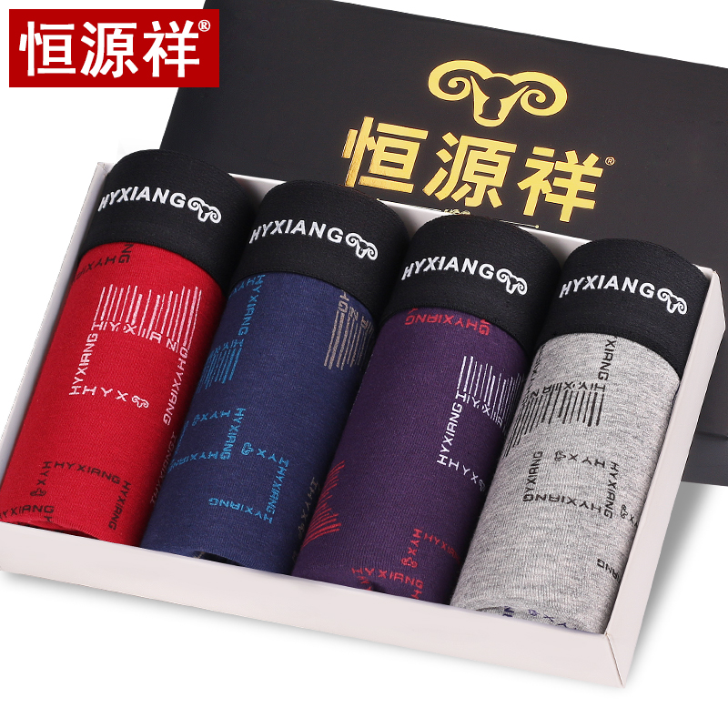 Hengyuan Xiang Briefs Men's Four Corners Pants Pure Cotton Antibacterial Large Size Sports Breathable Male Style Loose Shorts Four-corner Pants Men