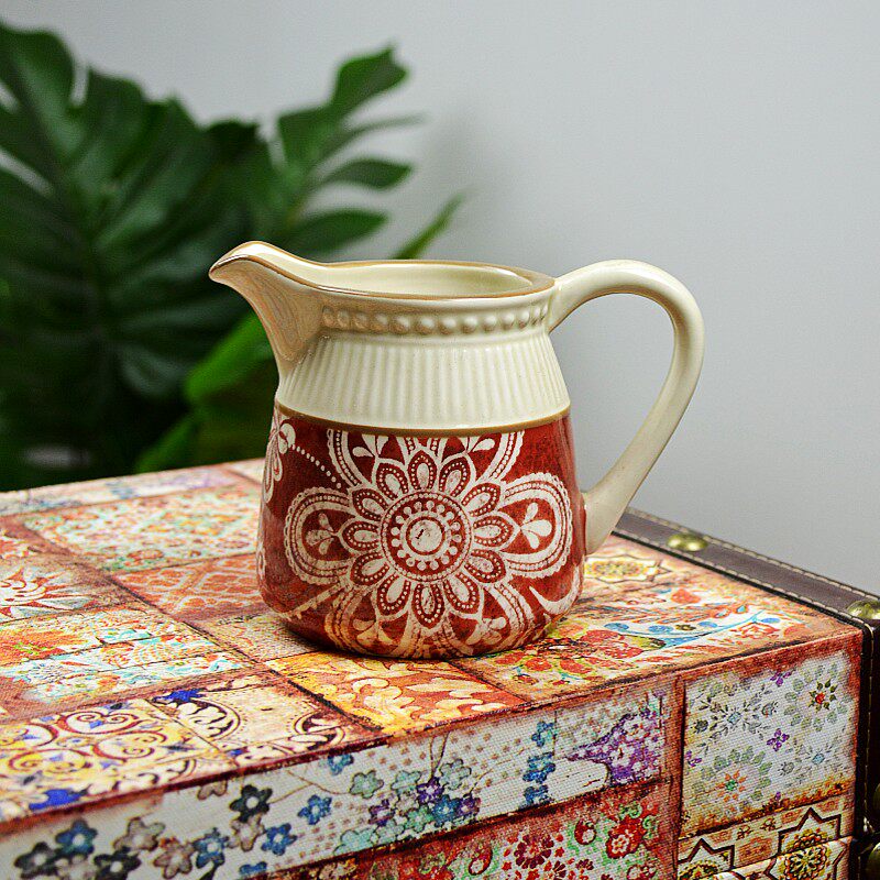 Super large pot of ink painting (glaze leaking, staining, pitting, etc.) retro flower spout and relief damage (full water 750ml retro flower cup and saucer with bumps and black spots, etc.) flower diameter 27 5cm leaking glaze bump black