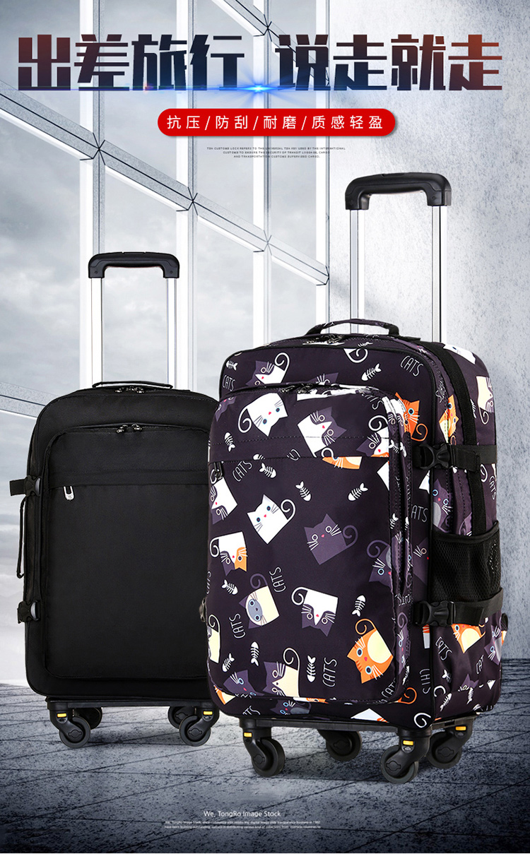 Jinhao Korean version of casual nylon shoulder trolley backpack folding large-capacity luggage bag suitcase 20 inches for men and women