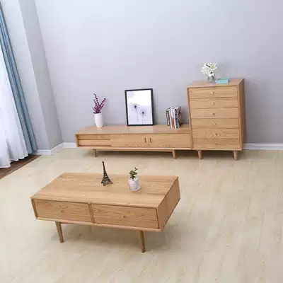 Nordic TV cabinet solid wood Japanese North American oak log simple modern living room small apartment cabinet tea table combination