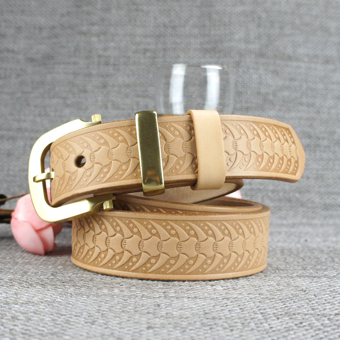 Embossed men's leather belt needle buttoned headband Bull Leather Belt Casual Retro 100 hitch Chang Huo