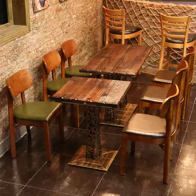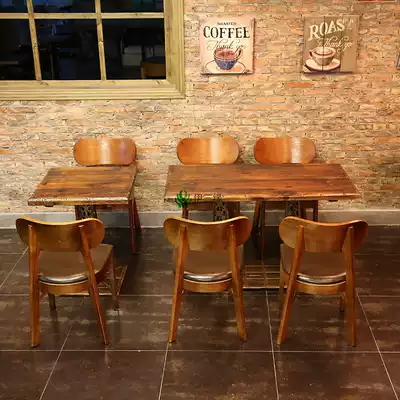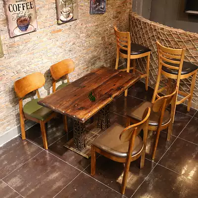 Nordic cafe solid wood table and chair American country western restaurant old vintage sweet shop pine table and chair combination