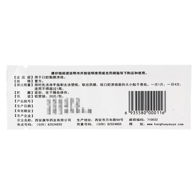 Remove the size of the ulcer of the oral cavity of the drug membrane and stick it to the affected area once, 1 tablet, 4 times a day