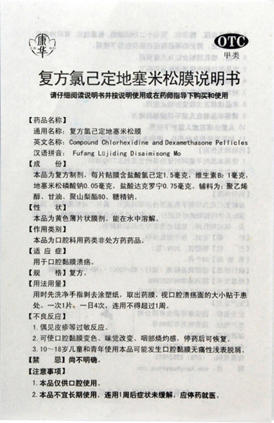 ) Conghua compound chlorhexidine dexamethasone membrane 20 sachets oral ulcer mucosal tongue sores