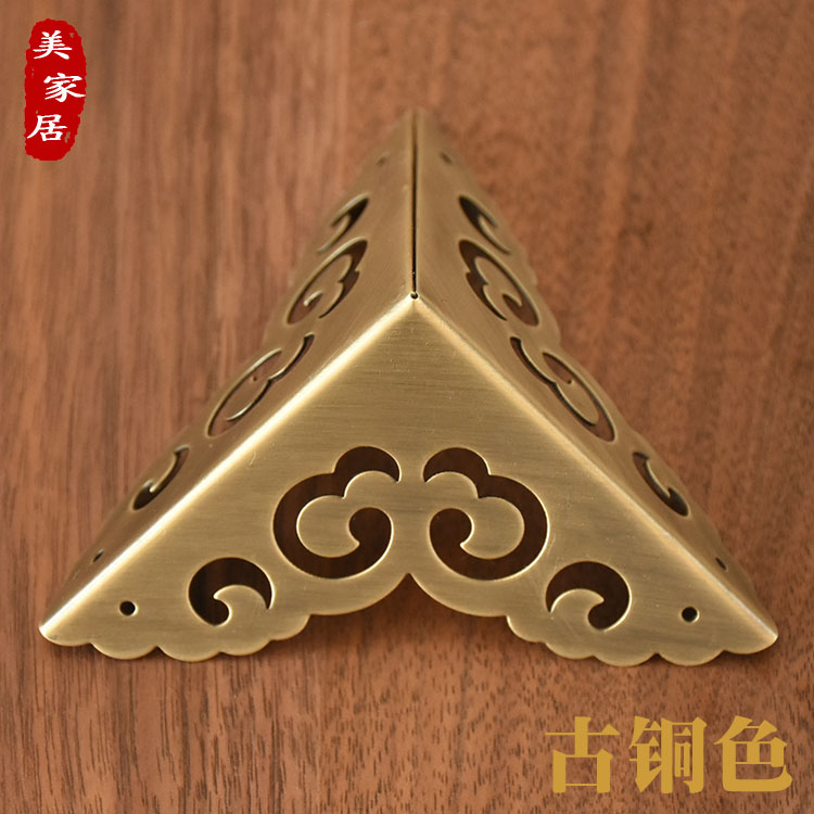 Imitation ancient pure copper triple bread corner Chinese furniture corner flower 5 gold accessories corner sheet wooden case cabinet corner code Right angle guard