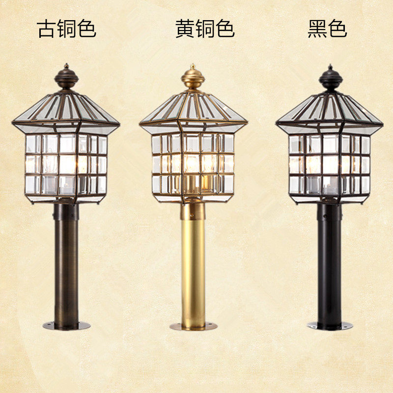 All-copper garden villa column head lamp LED lawn lamp courtyard outdoor street lamp landscape lamp household waterproof high pole lamp