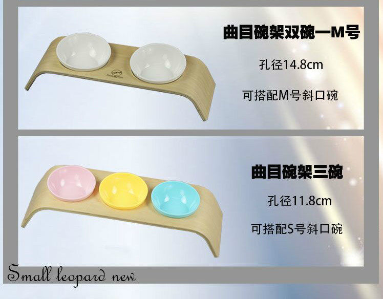 Three Bowls Cat Bowl protection Cervical Spine High Foot Cat Food Bowl Table Cat Food Basin Anti-Flap Pet Bowl Shelf Solid Wood