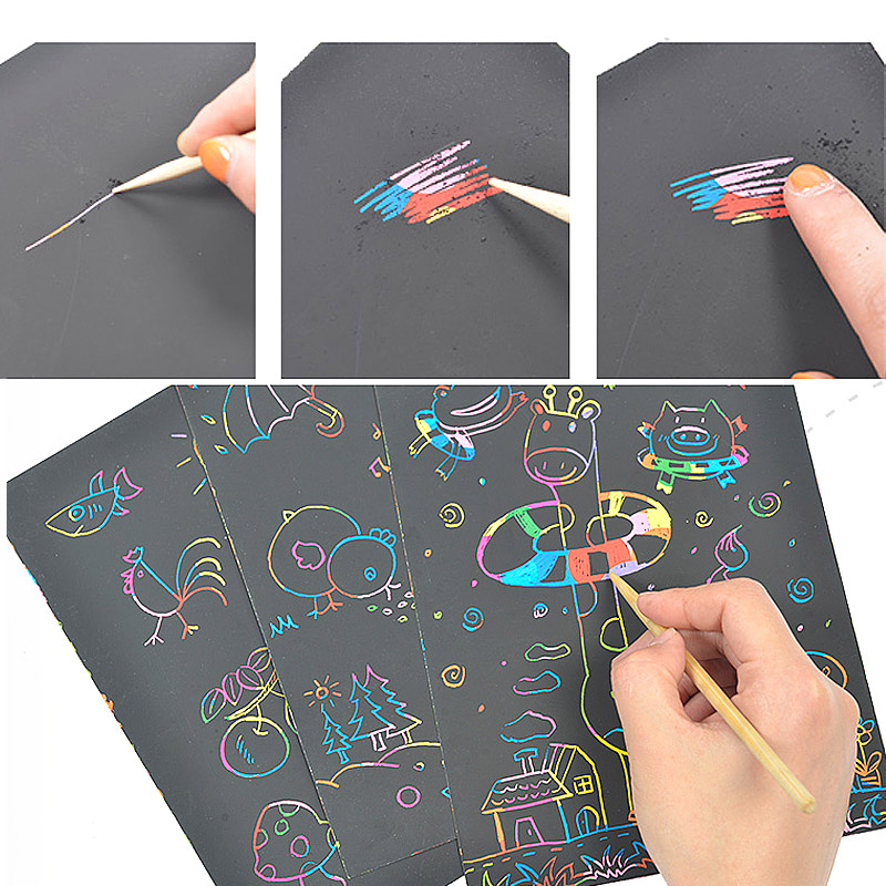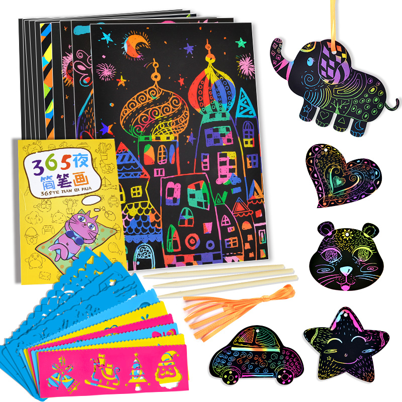 Scrape paper young children showed color 100 scratch painting hand diy making a4 sand painting sand creative 8k