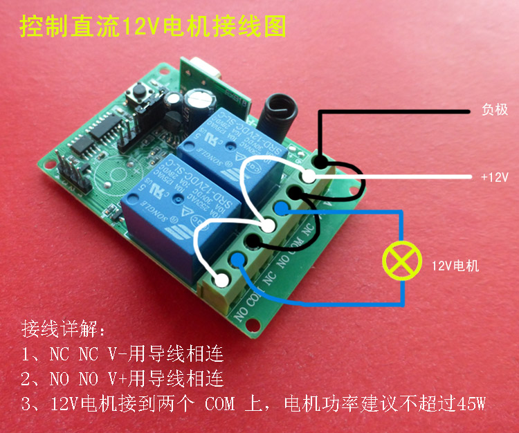 315M 12V 12V two-way wireless remote control switch 2-way lamp motor motor positive reversal two-way wireless controller