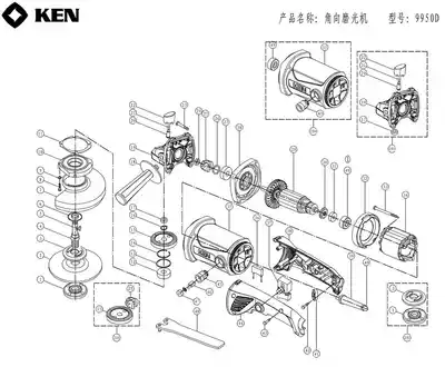 Ruiqi angle grinder 9950d rotor stator output shaft front cover size gear switch rear cover carbon brush and other accessories
