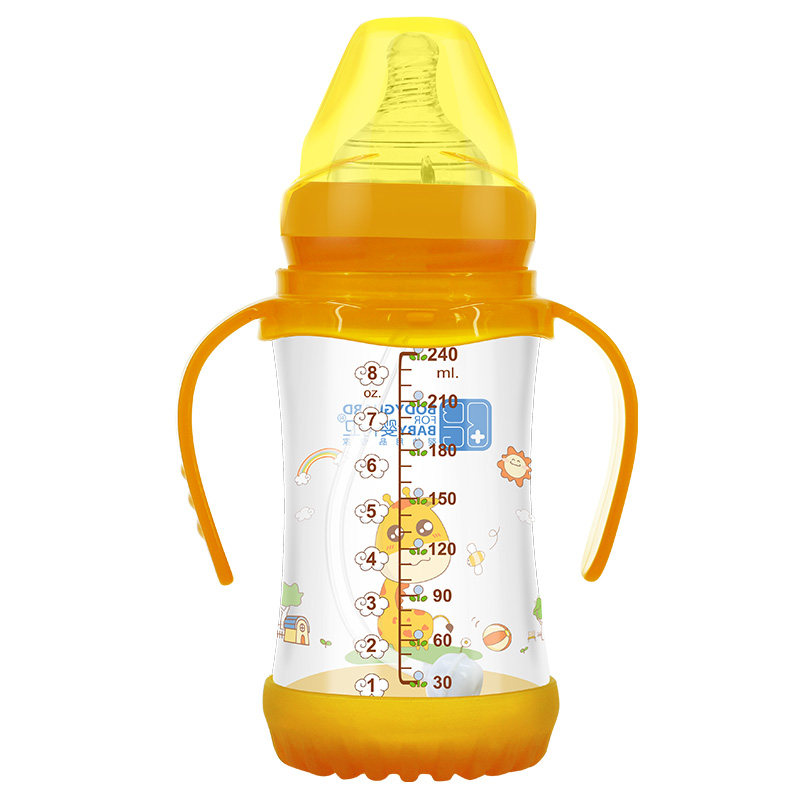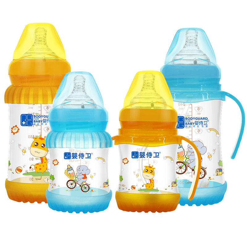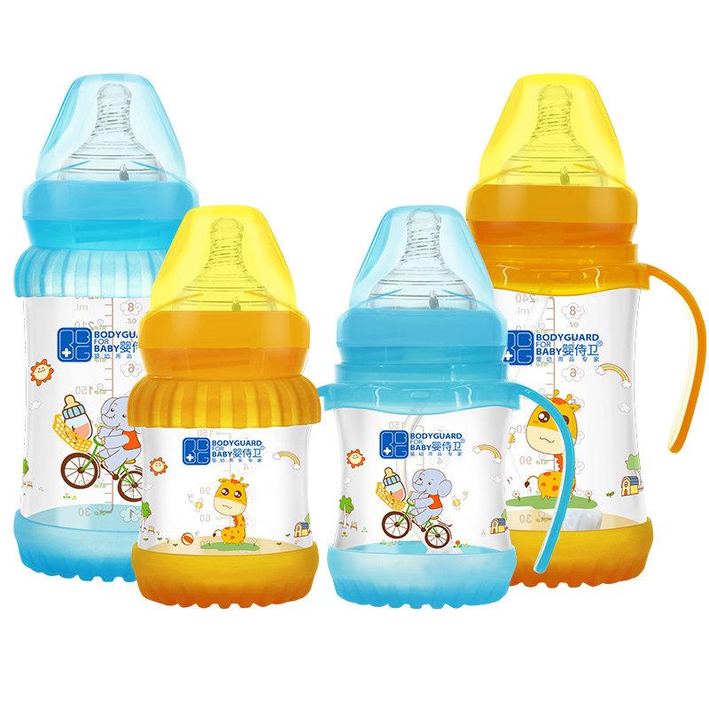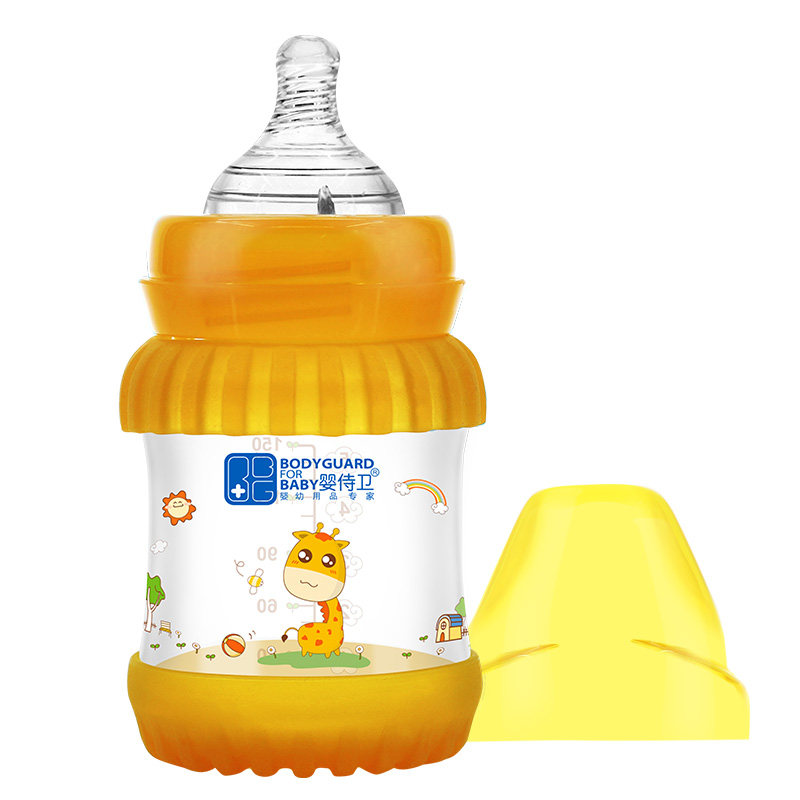 Baby guard Baby crystal diamond glass bottle Baby wide mouth diameter glass bottle with drop-proof silicone protective cover