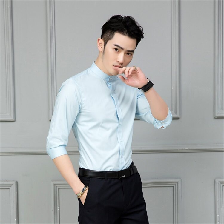 White light blue black seven-sleeve light blue seven-sleeve