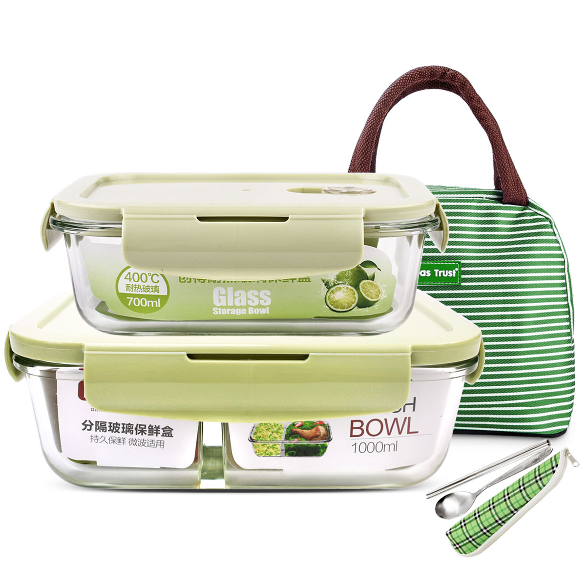 Chuangde office worker insulation glass lunch box Microwave oven special preservation box Storage glass bowl with lid 3-piece set