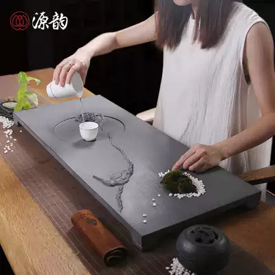 Genyun carving household Stone tea tray tea set large natural black gold stone tea table Tea Sea drainage kung fu tea set