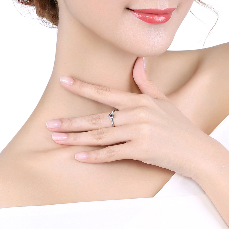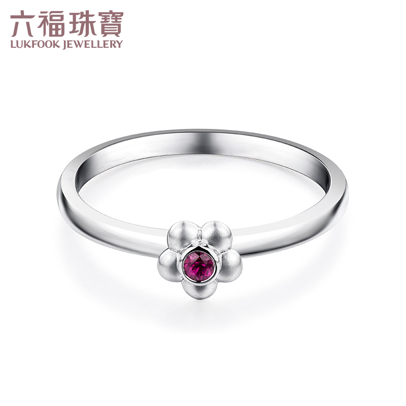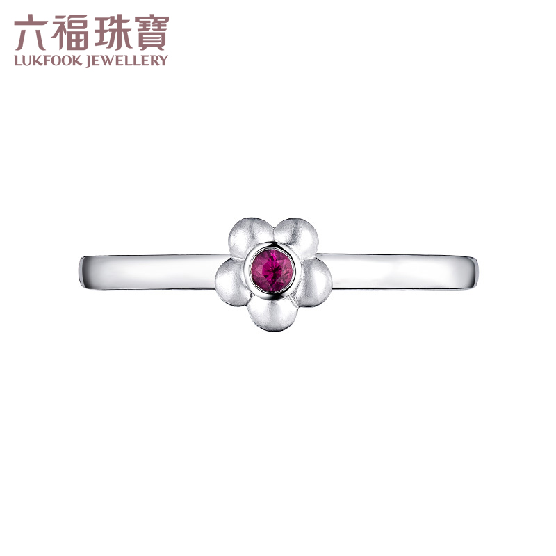 Lukfook Jewelry Easy Bear series 18K gold ruby ring female white K gold ring closed ring 27040