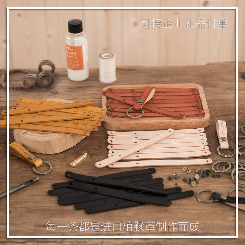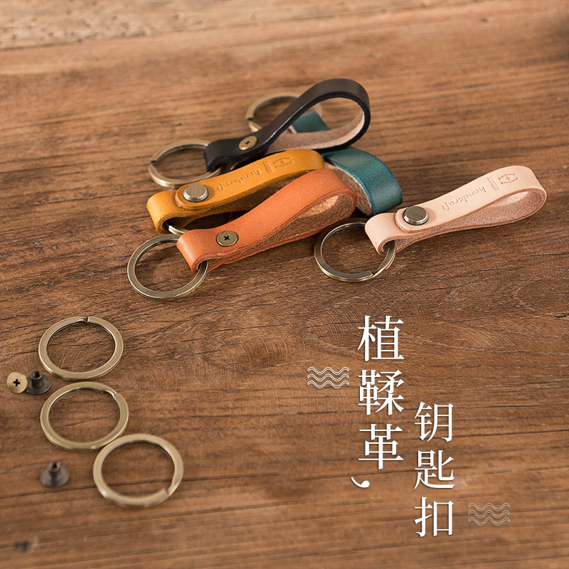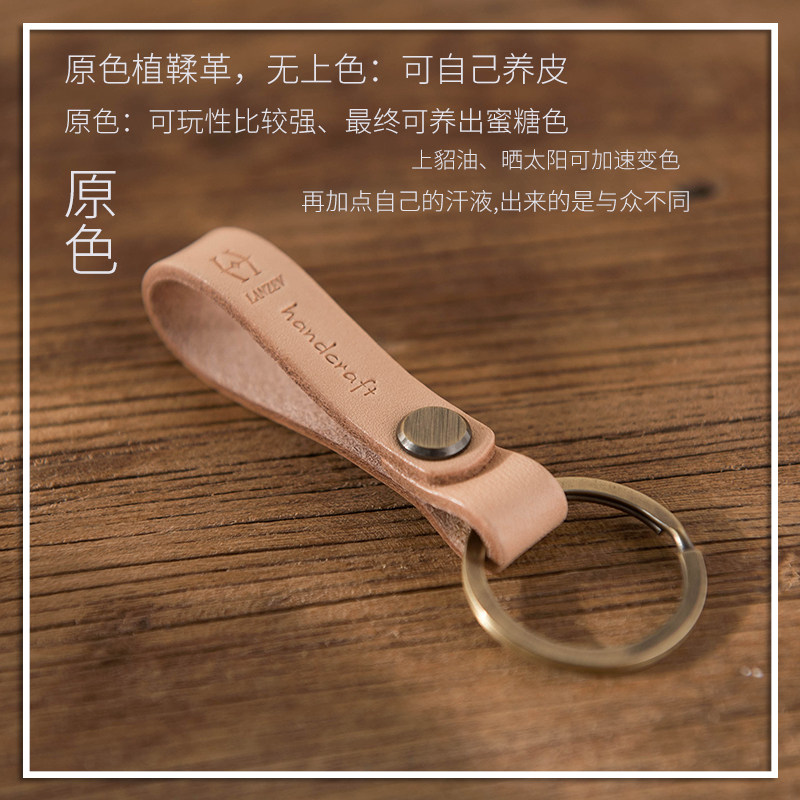 Lanze Japanese simple retro style keychain genuine leather vegetable tanned leather handmade