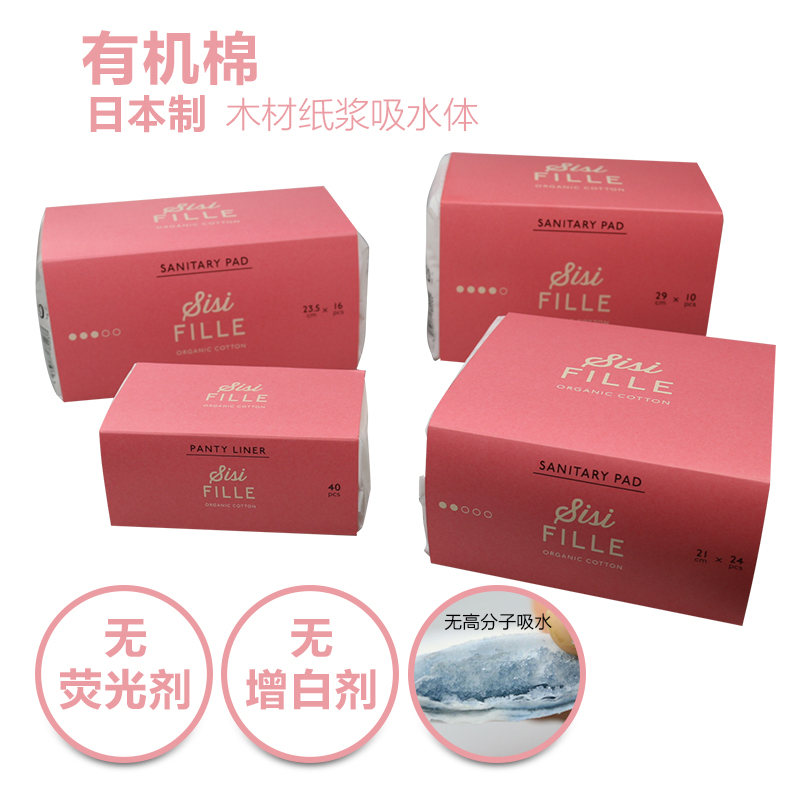 Japanese sanitary napkin night use organic cotton material wood pulp absorbent body with wings 10 pieces without fluorescent agent