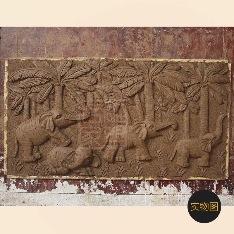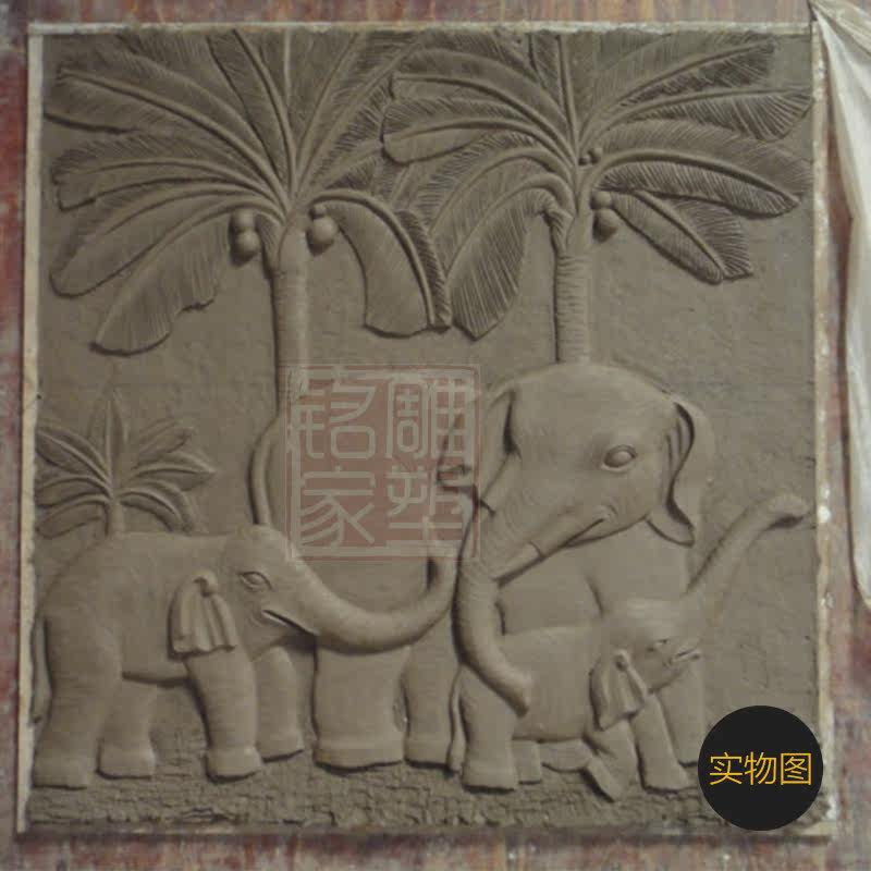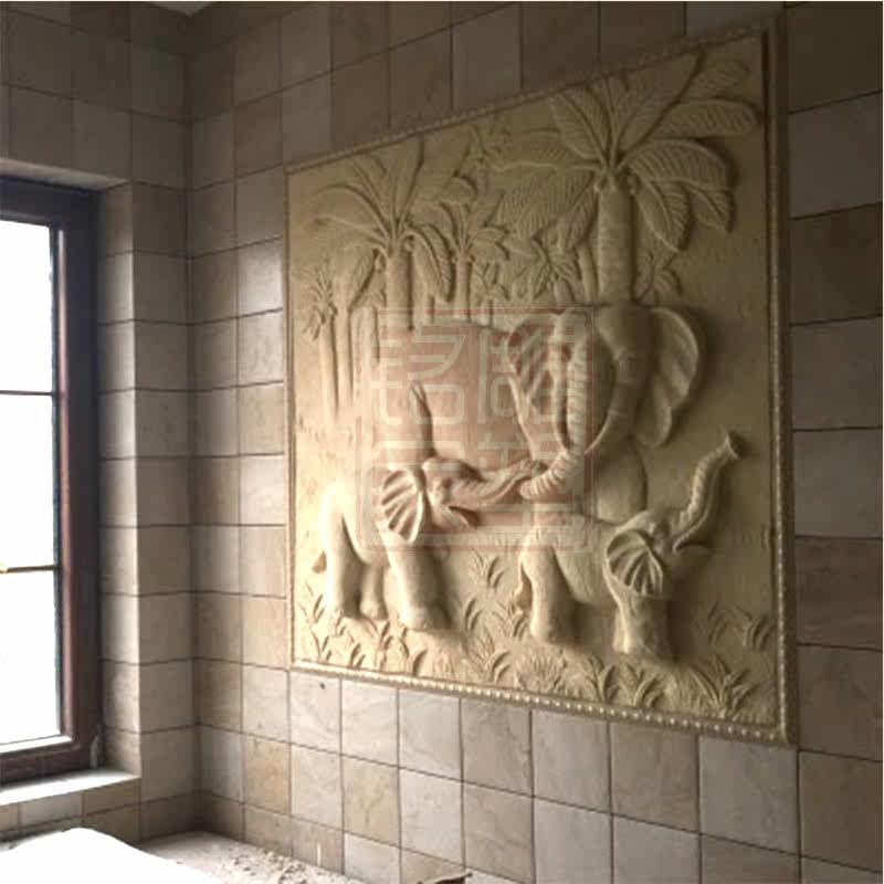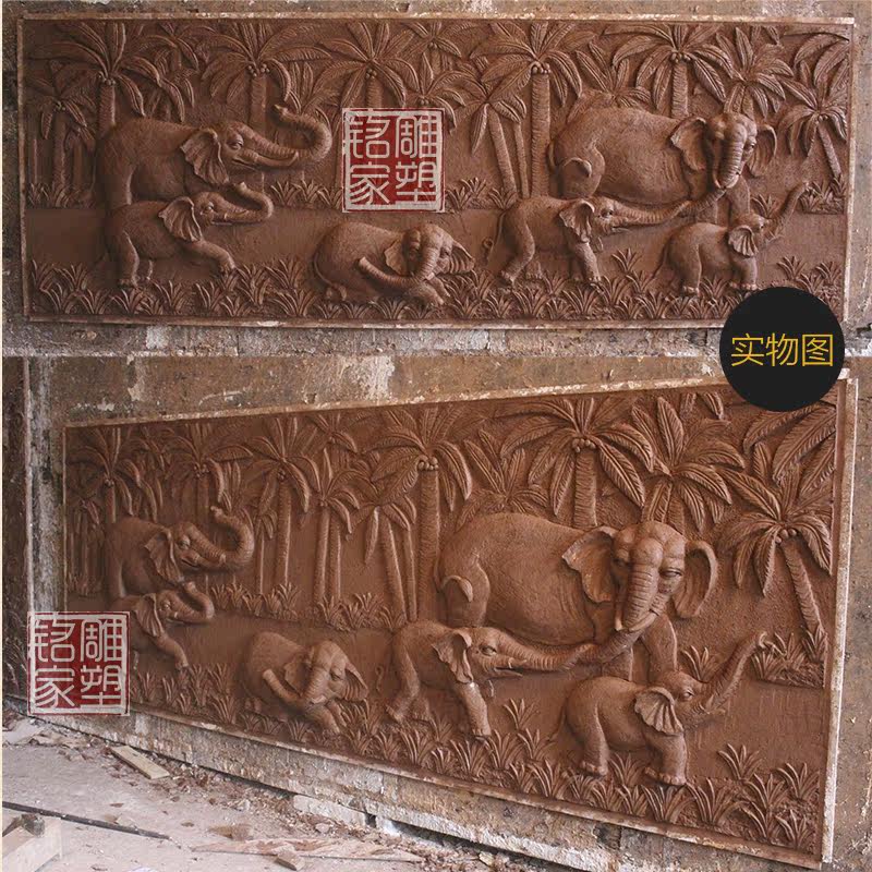 Artificial sandstone custom relief dining room murals courtyard exterior wall decoration painting living room TV background wall elephant group portrait