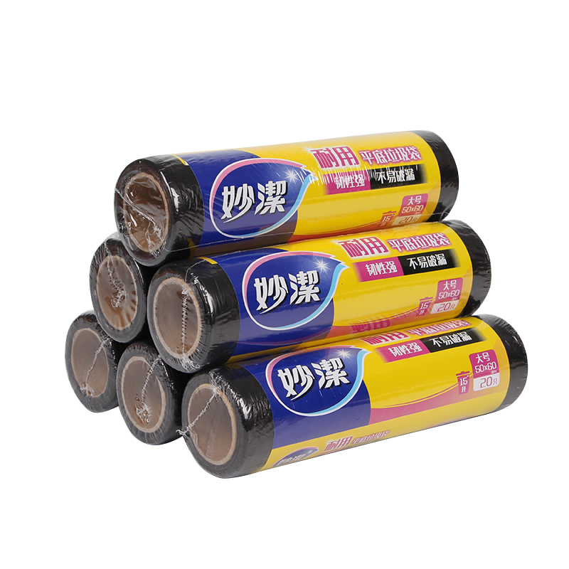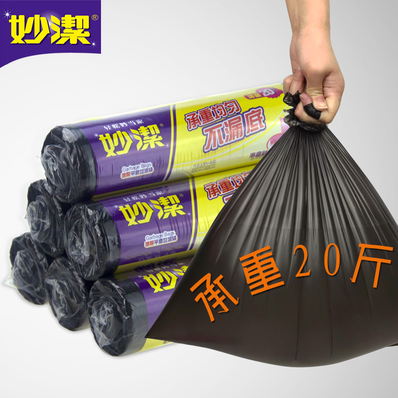 Miaojie thickened garbage bag Thick roll household point-broken flat flat plastic bag large medium 5 rolls