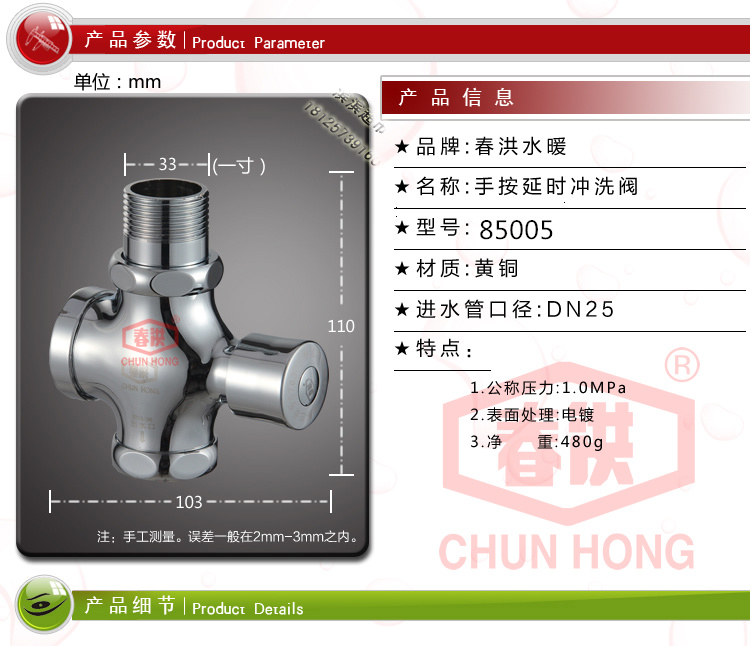 Chunhong flush valve delay hand press flush valve 1 inch 6 points four-way flush valve squat toilet flush valve DN2025