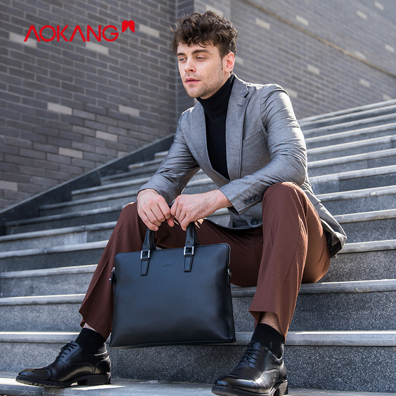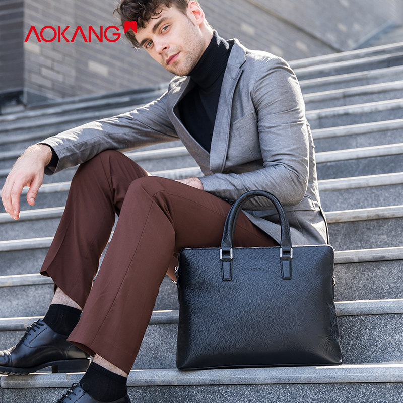 Okom Men's Bag New Genuine Leather Briefcase Handbag single shoulder inclined satchel bag Business bag headlining Bull Leather Cross