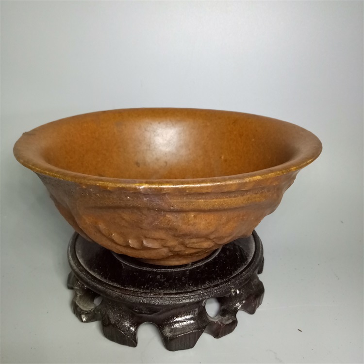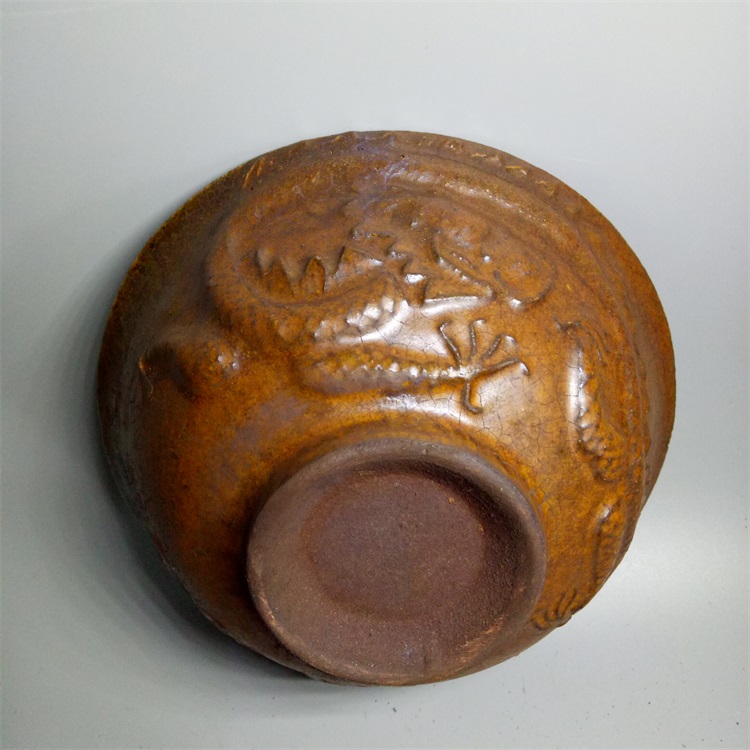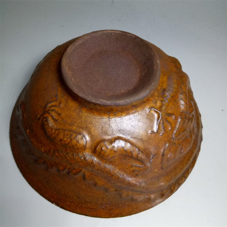 North Song Jizhou kiln pure hand-made maple leaf carving dragon bowl antique folk collection antique antique