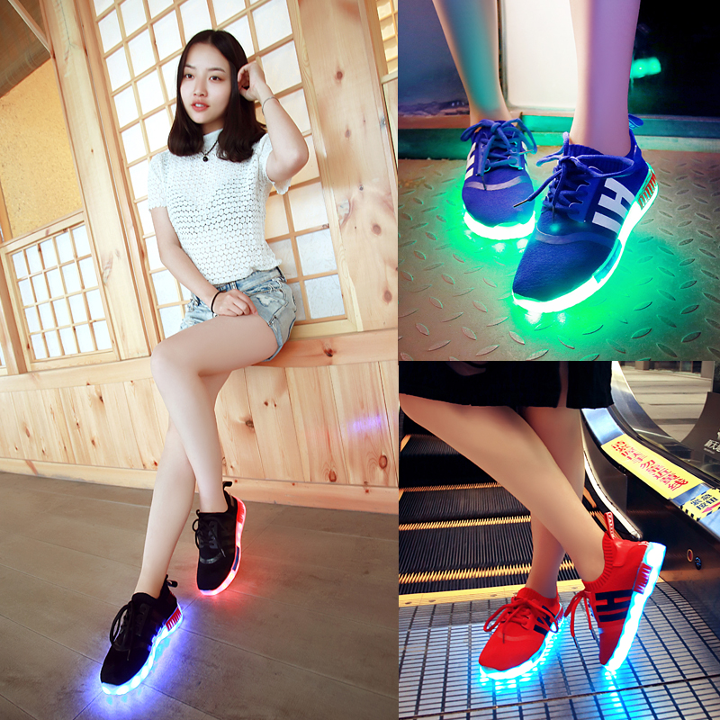 Colorful luminous shoes glitter shoes Korean trend couple casual shoes men and women LED luminous shoes USB charging fluorescent shoes