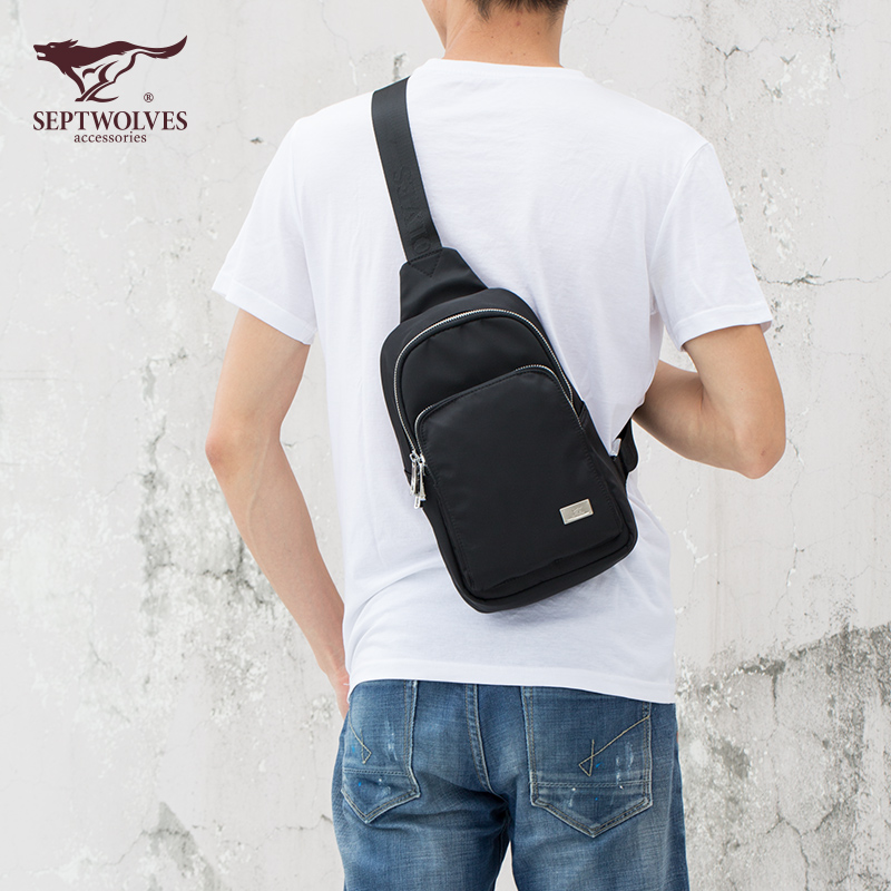 Seven Wolves Men's Chest Bag Casual Waterproof Oxford Cloth Single Shoulder Diagonal Satchel Outdoor Sport Travel Canvas Small