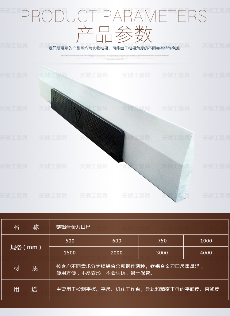 (Tianjian)Precision grade 0 magnesium aluminum knife edge ruler Magnesium aluminum alloy knife edge ruler Knife edge flat ruler elevator knife edge