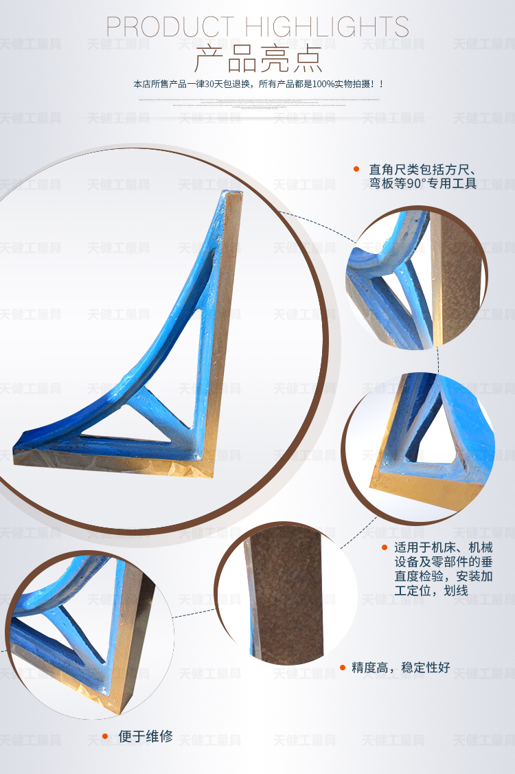 (Tianjian)Cast iron right angle ruler Right angle ruler Cast iron right angle ruler Wide seat right angle ruler Cast iron detection right angle ruler