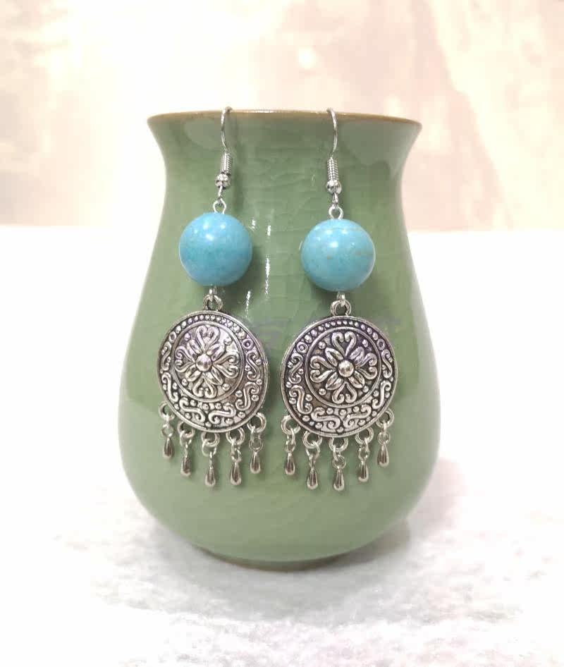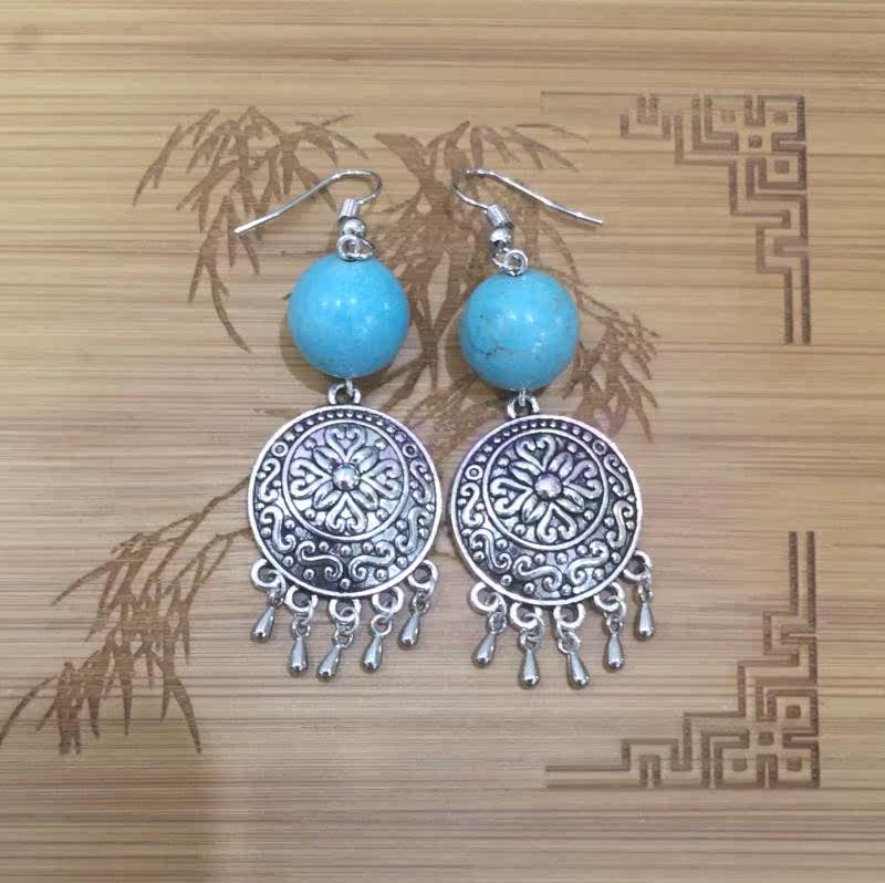 Desperate hexagram master Ning Fei Liu Naping the same earrings, turquoise earrings, ancient costumes, Hanfu, earrings, skirts, Beizi, ear hooks, earrings
