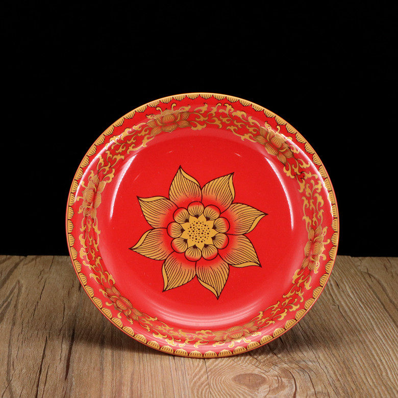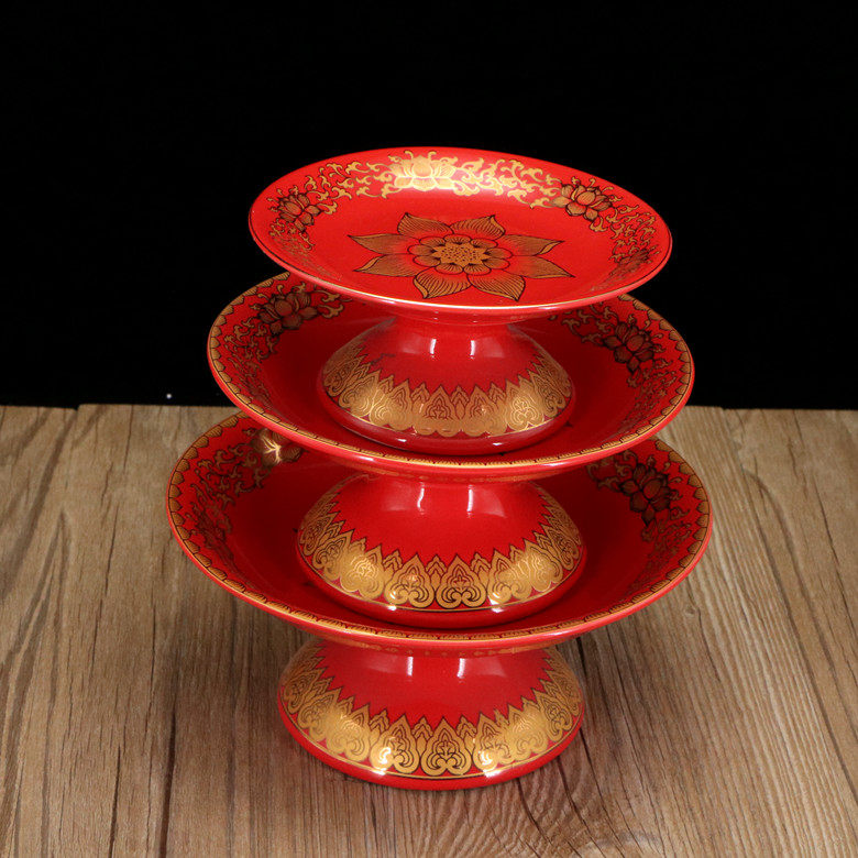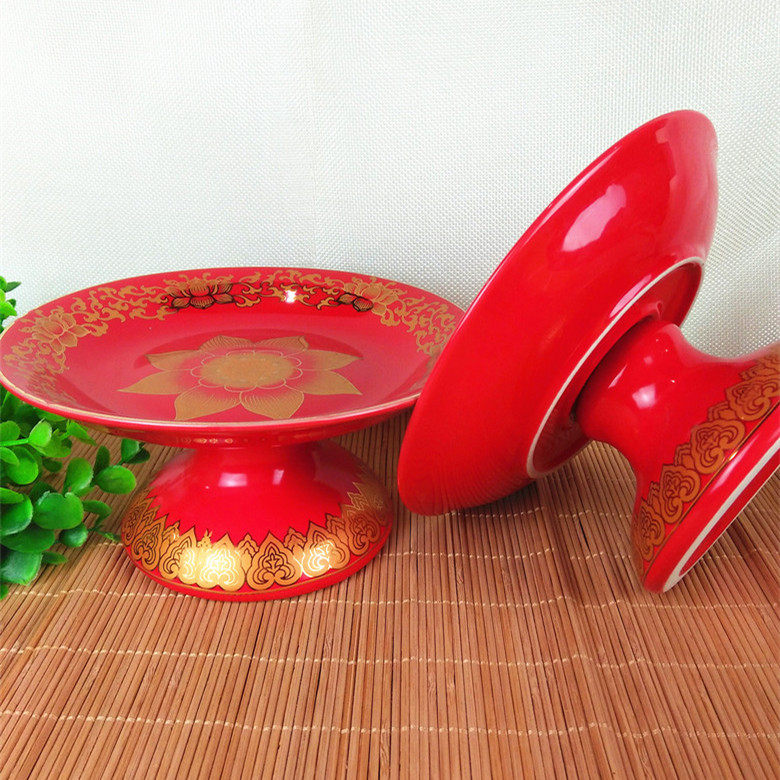 Ceramic fruit plate is true gold red and digitized lotus fruit disc high-foot lotus fruit plate Buddha fruit disk