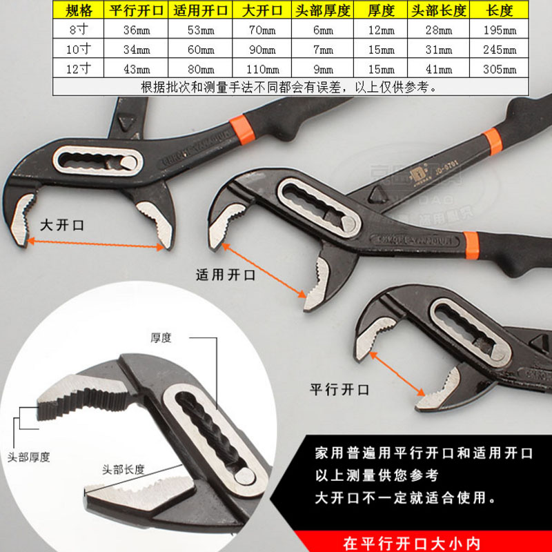 Forceps Jingdao water pipe pliers Pipe pliers Carp pliers Pipe Household faucet tools pump pliers pliers live wrench