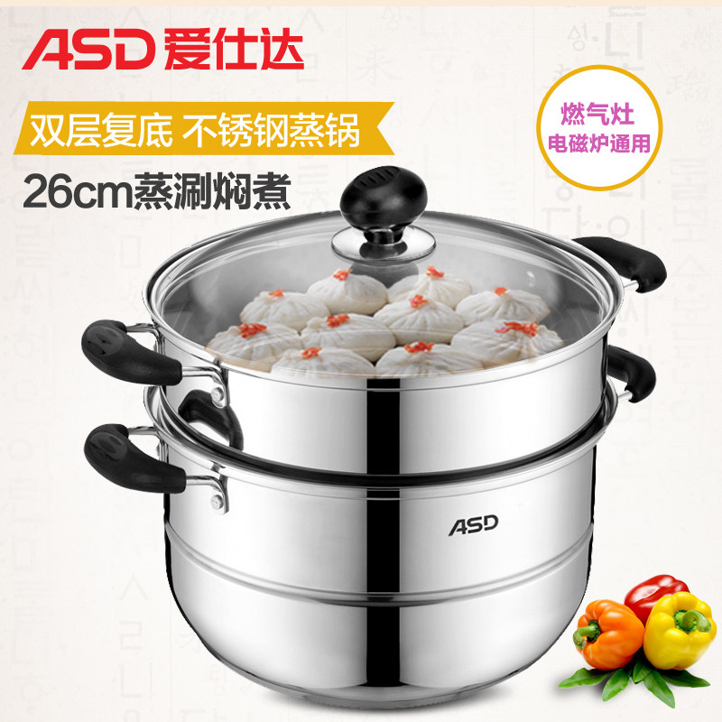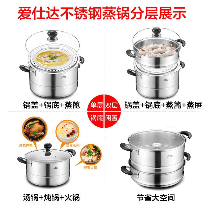 Asda steamer stainless steel pot 26 small 1 two 2 more 3 three-layer thickened induction cooker Household large gas stove steamer