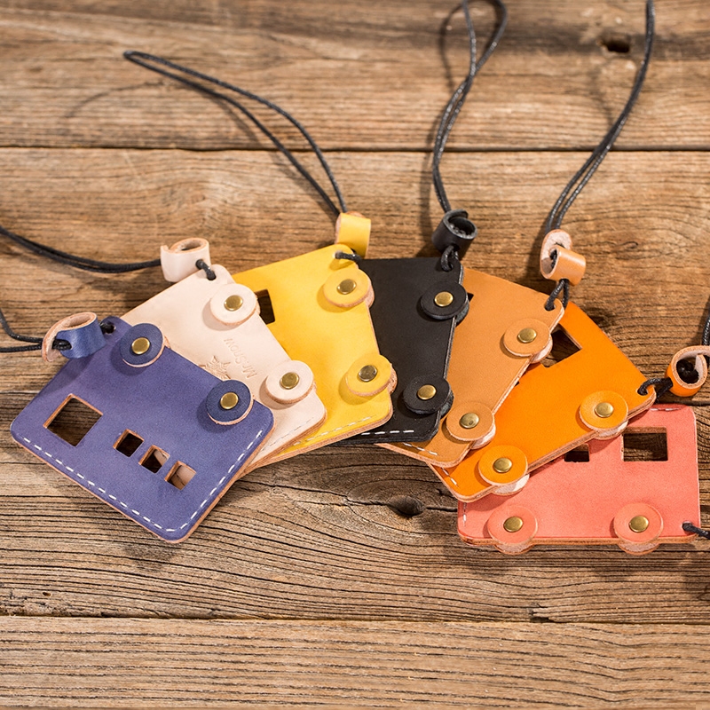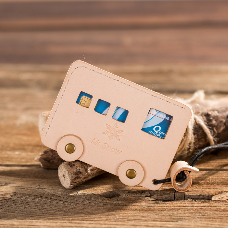 Ultra-thin small card holder men's business card card holder female multi-card position leather cartoon bus card holder mini credit card holder