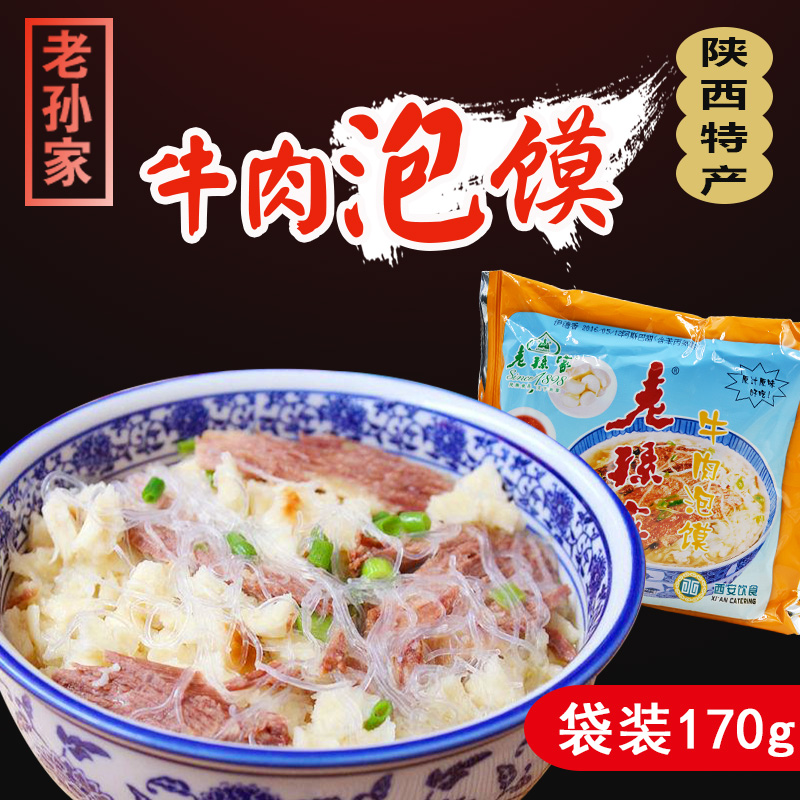 Old Sun Home Beef Bubble Bread Whole Box 170g * 24 Zhengzong Shaanxi Trinborn Xi'an Back to the people Street clear and convenient snack