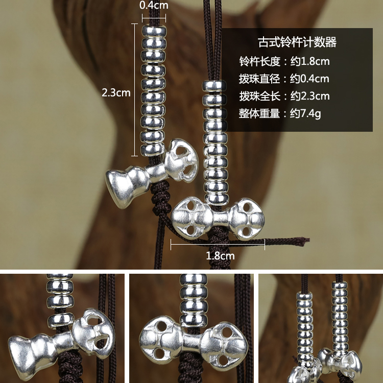 Pure Silver Bell pestle counter beaded beads decoration rosary counting beads counting accessories ancient method handmade accessories pendant pendant