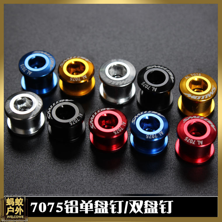 Black (double disc nail) red (double disc nail) silver (double disc nail) with a blue (double disc nail) one green (double disc nail) red (double disc nail) red (single disc nail)