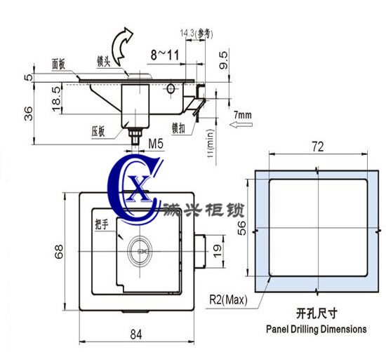 Electric cabinet box plane lock MS866-4 sanitation vehicle cleaning vehicle sprinkler door lock chassis cabinet panel lock square lock