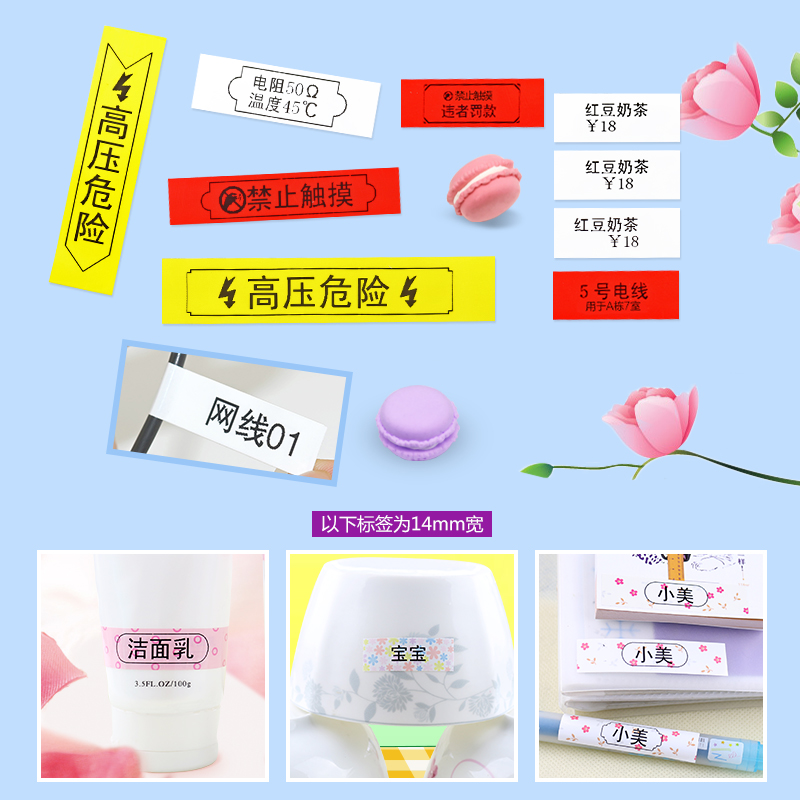 Jingchen JC-114 Label printer Ribbon 12 14mm white on yellow on black cable Network cable Label paper Label tape Price label sticker Waterproof self-adhesive printing machine Cute ribbon