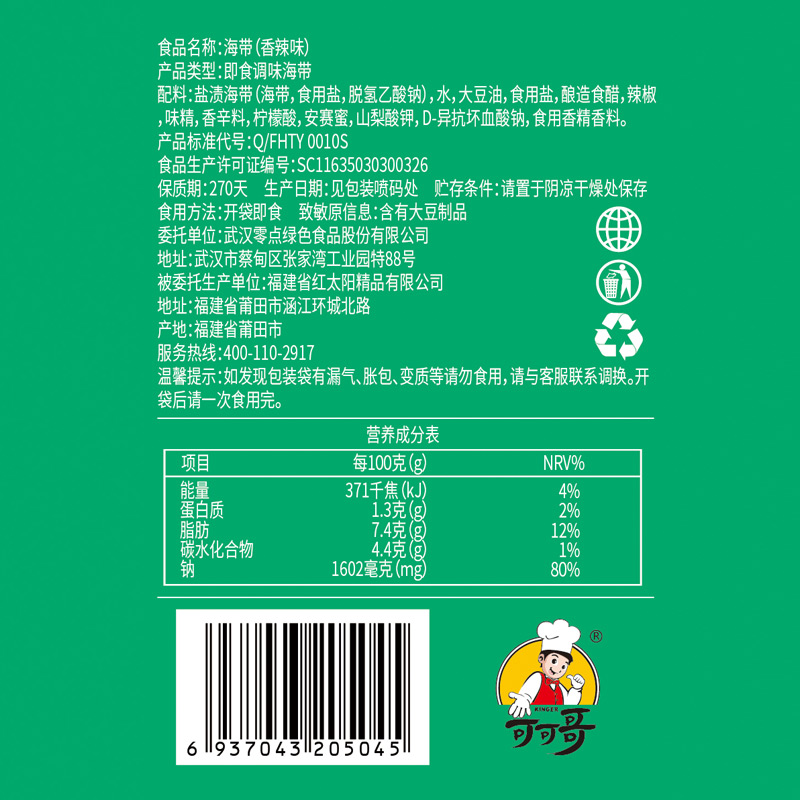 Salted kelp (kelp salt) Water Soybean oil Brewing vinegar Pepper monosodium glutamate spices